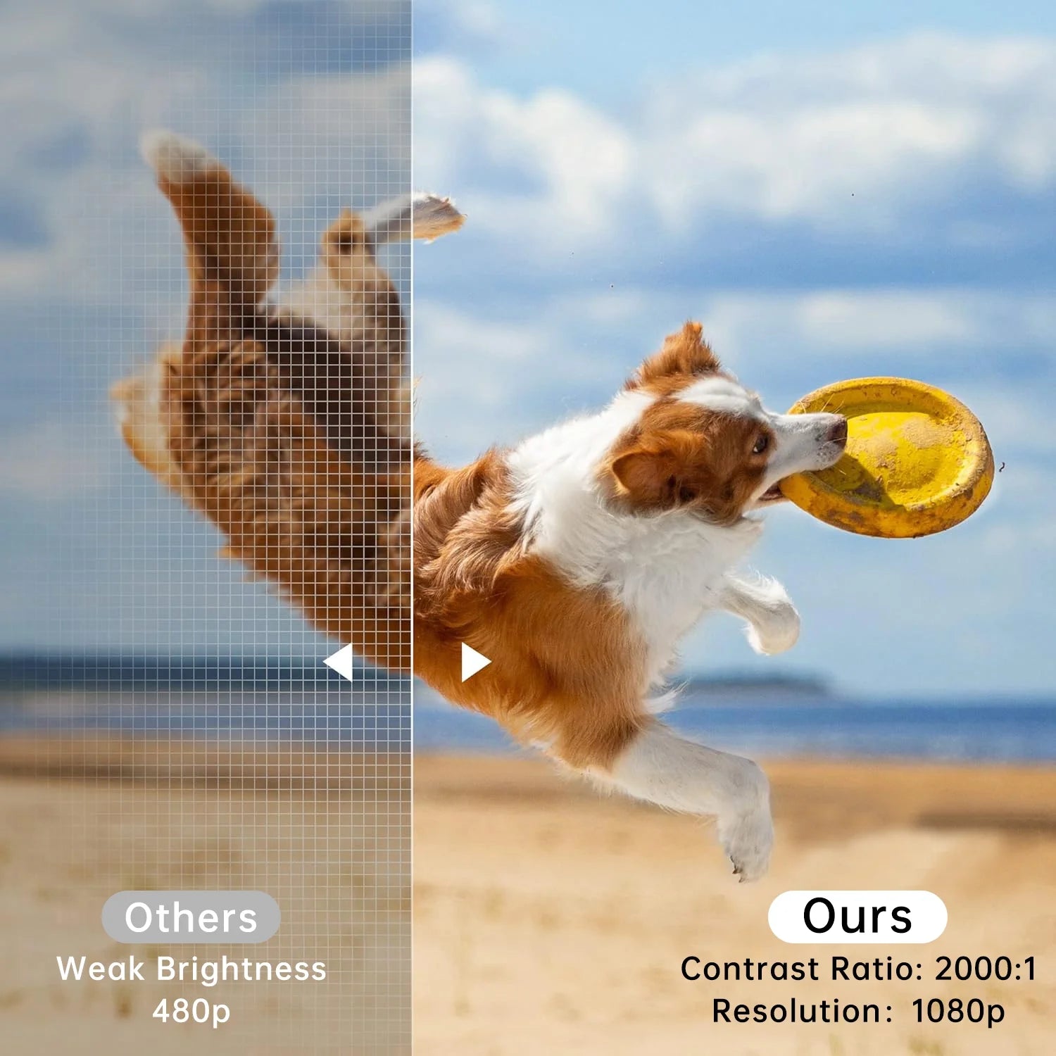 - 【Upgraded 1080P HD Video Projector】 To better meet your needs, we have upgraded the home projector with our latest LED light source. The smart projector features a native 720P resolution (1280x720) with 1080P Full HD support. The latest color calibrating and adjusting technology works to reproduce more intricate color details than other mini projectors, which presents our customers a dynamic and color vibrant 1080P HD projected image quality.