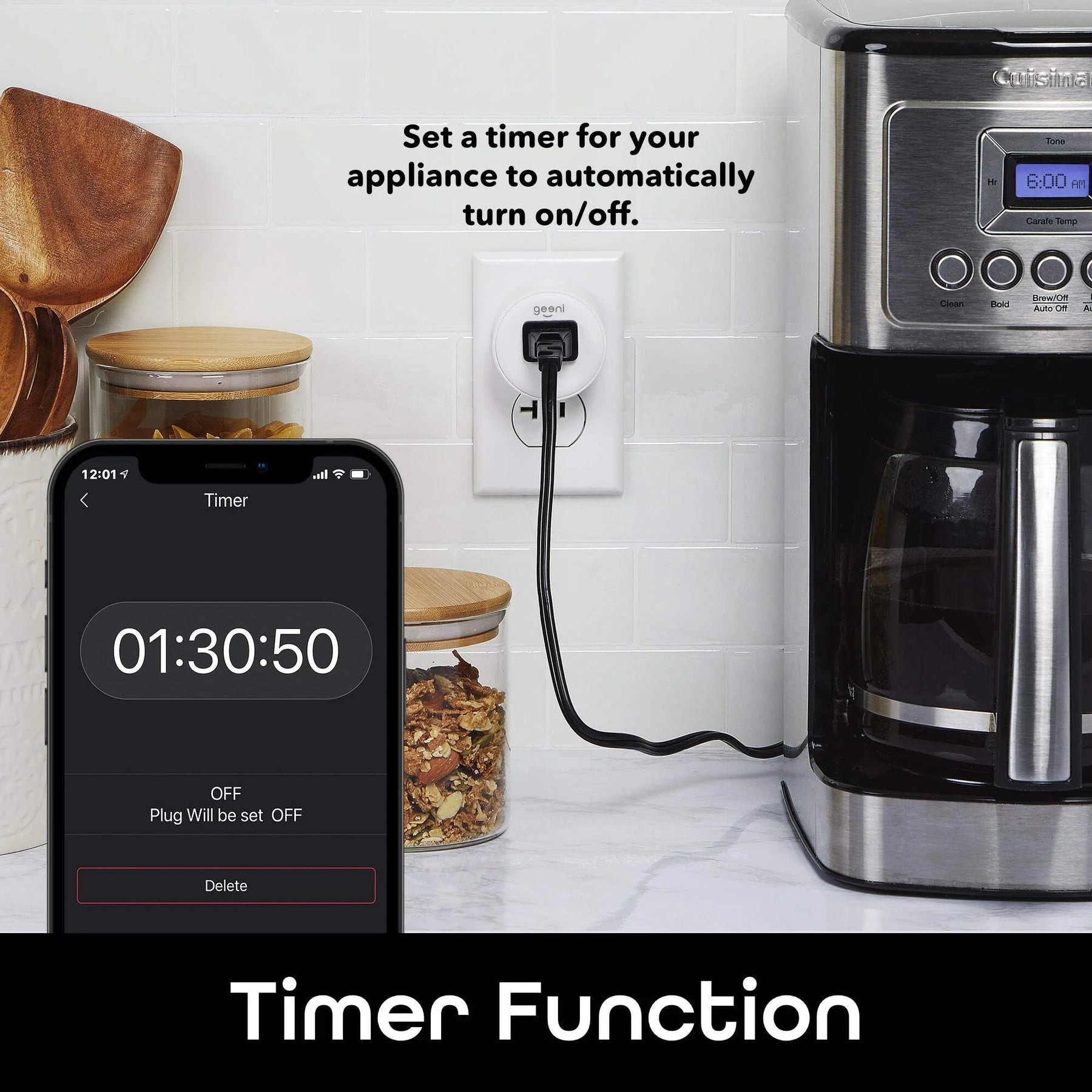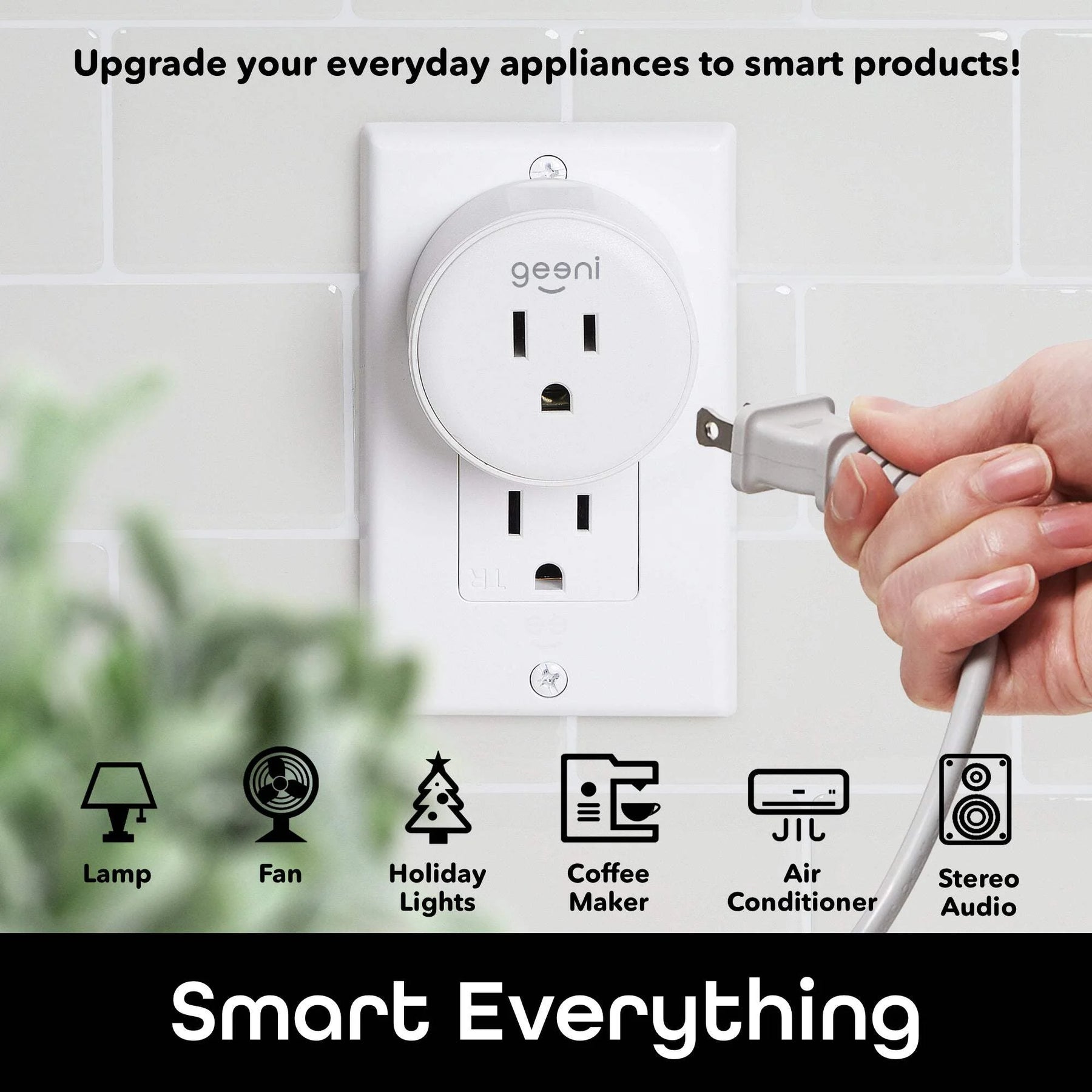 - SMART OUTLET CONTROL: Seamlessly control your appliances, lights, and electronics from anywhere with the Geeni Smart Wi-Fi Outlet. Use voice commands with Alexa and Google Assistant, or control through the Geeni app for effortless smart home management.